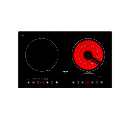 ■ Schott Ceran ceramic glass top ■ 1 Induction zone : Left 2400w ■ 1 Radiant zone : Right 2400w ■ LED display ■ Slide touch control ■ Timer function and child lock function ■ Automatic overheat cut off